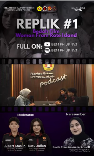 Jakarta – Badan Eksekutif Mahasiswa Fakultas Hukum UPN Veteran Jakarta kembali menghadirkan ruang diskusi kritis melalui program Resensi Publik dengan mengangkat tema Bedah Film: Women from Rote Island. Kegiatan ini menjadi bagian dari upaya peningkatan kesadaran mahasiswa terhadap isu sosial, khususnya yang berkaitan dengan perempuan dan kekerasan.