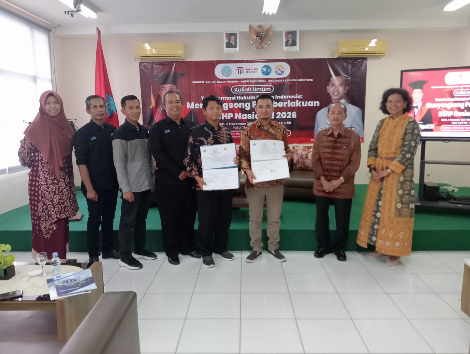 Penandatangan dilakukan setelah Guru Besar Fakultas Hukum Universitas Pembangunan Nasional “Veteran” Jakarta, Prof. Dr. Bambang Waluyo, S.H., M.H., menjadi narasumber dalam kuliah umum yang diselenggarakan oleh Fakultas Hukum Universitas Bangka Belitung (FH UBB) dengan tema “Transformasi Hukum Pidana Indonesia: Menyongsong Pemberlakuan KUHP Nasional 2026” ini dihadiri oleh ratusan mahasiswa Program Studi S1 Hukum FH UBB. Tema tersebut menjadi sangat relevan dengan kondisi aktual sistem hukum di Indonesia. Sebagaimana diketahui, Undang-Undang Nomor 1 Tahun 2023 tentang Kitab Undang-Undang Hukum Pidana (KUHP Nasional) telah diundangkan pada 2 Januari 2023 dan akan mulai berlaku tiga tahun setelah tanggal diundangkan, sesuai ketentuan Pasal 624 KUHP.